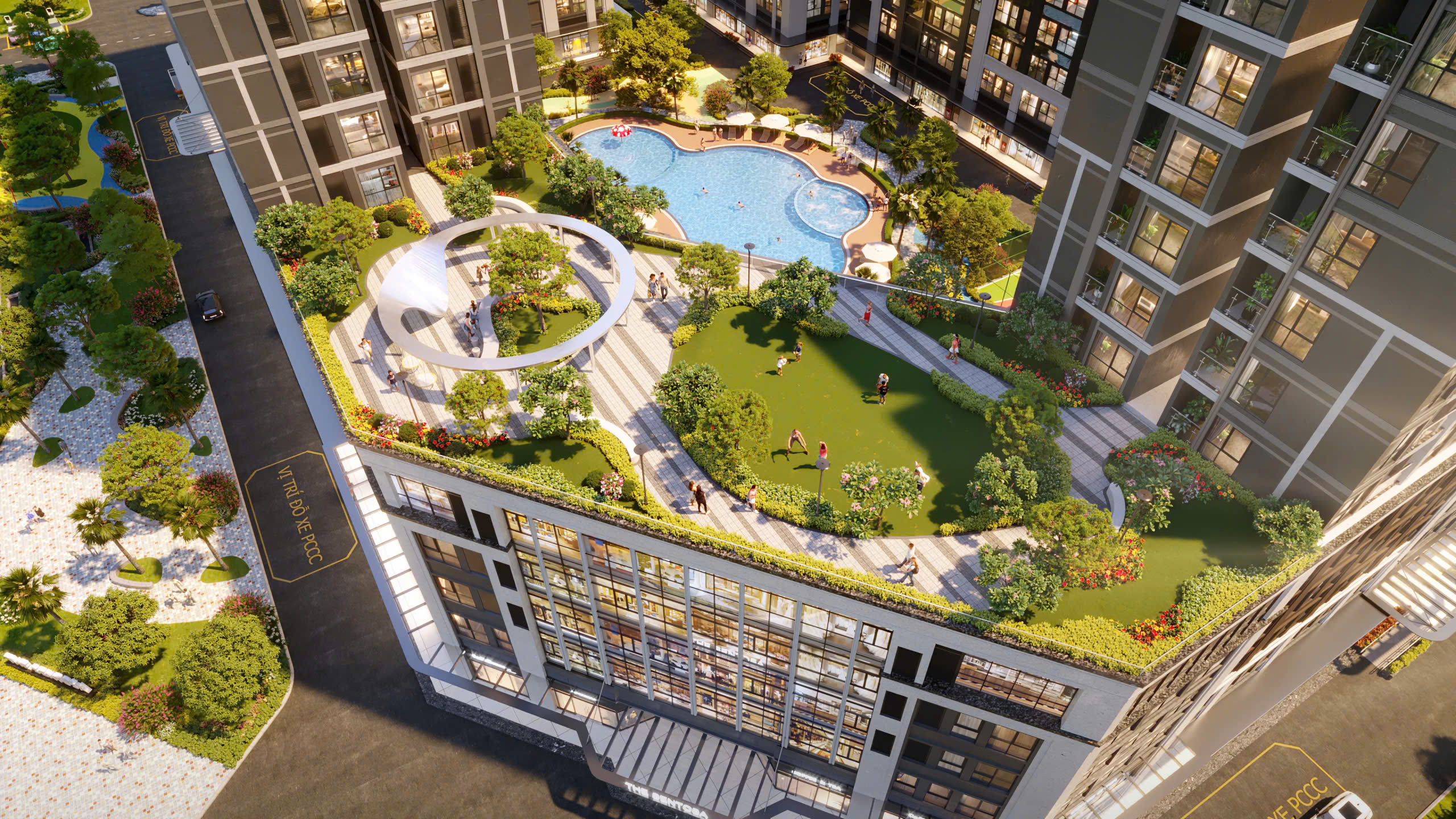 Khối đế thương mại tích hợp hệ thống mua sắm, dịch vụ và giải trí hiện đại, giúp cư dân tiếp cận đầy đủ tiện ích ngay trong nội khu mà không cần di chuyển xa.